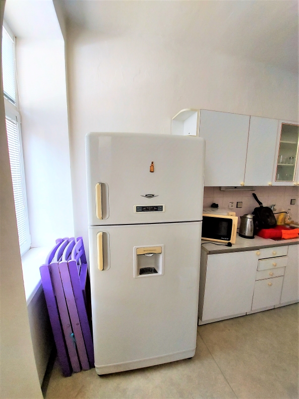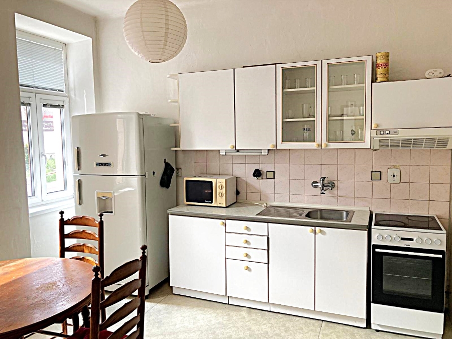 K dispozici prostorná kuchyně s kuchyňskou linkou se spotřebiči, jídelním stolem se židlemi. Výhodou dispozice bytu jsou neprůchozí pokoje. V bytě velká koupelna s vanou, toaleta a prostorná hala.