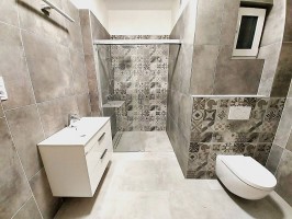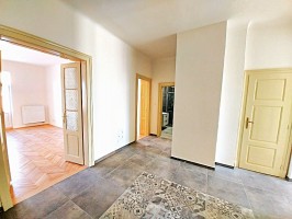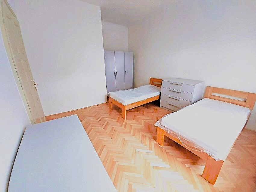 Dvoulůžkový pokoj má výhled do dvorního traktu. V bytě tři neprůchozí dvoulůžkové pokoje, které jsou, stejně jako prostory v celém bytě, vybavené novým nábytkem. Ve vyzděné koupelně je sprchový kout, zrcadlová skříňka, umyvadlo, toaleta, druhá toaleta je samostatná mimo koupelnu. K dispozici pračka a sušička. Byt má 140 m2, prostor v bytě zaručen.