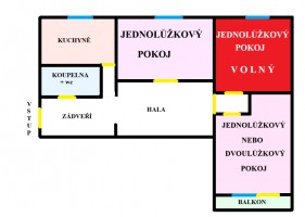 Byt nabízí samostatné neprůchozí pokoje s dostatkem soukromí, prostoru a světla.