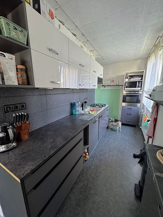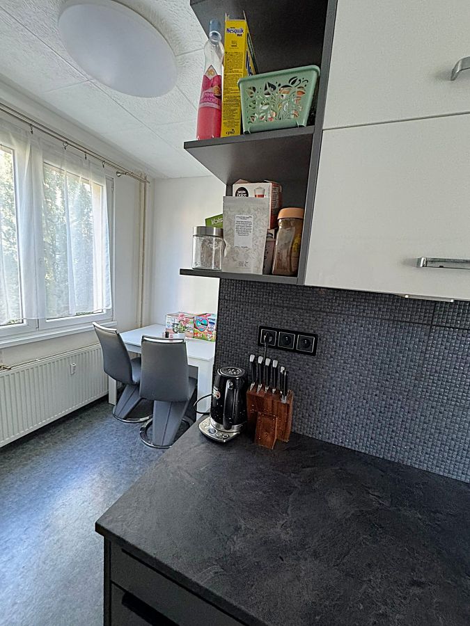 K dispozici kuchyňská linka se spotřebiči, jídelní kout se stolem a židlemi. Oblíbená dispozice bytu nabízí neprůchozí prostorné pokoje, z nichž jeden z nich má vstup na balkon. Nová vyzděná koupelna se sprchovým koutem a toaletou má vstup z chodby bytu. Byt je vybaven vkusným a praktickým nábytkem, válendami a skříněmi.