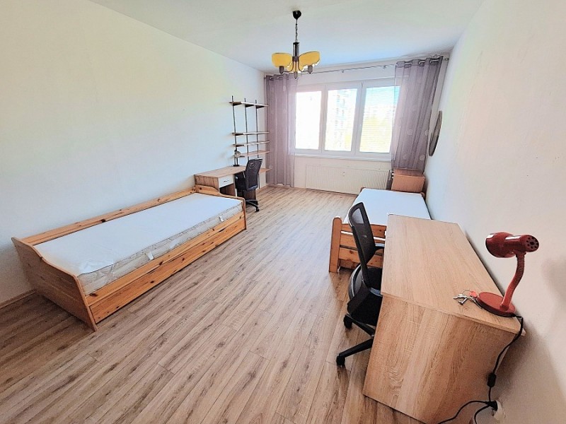 Pronájem prostorného zařízeného bytu 3+1 s balk., neprůchozí pokoje, 15 minut na Zdrav. soc. fak. a JU.