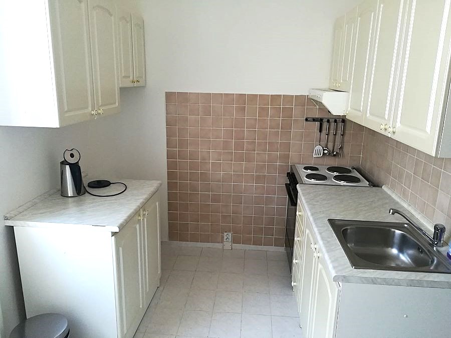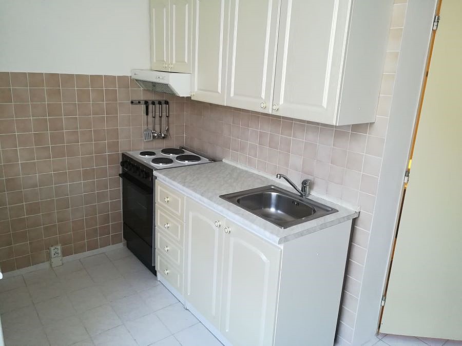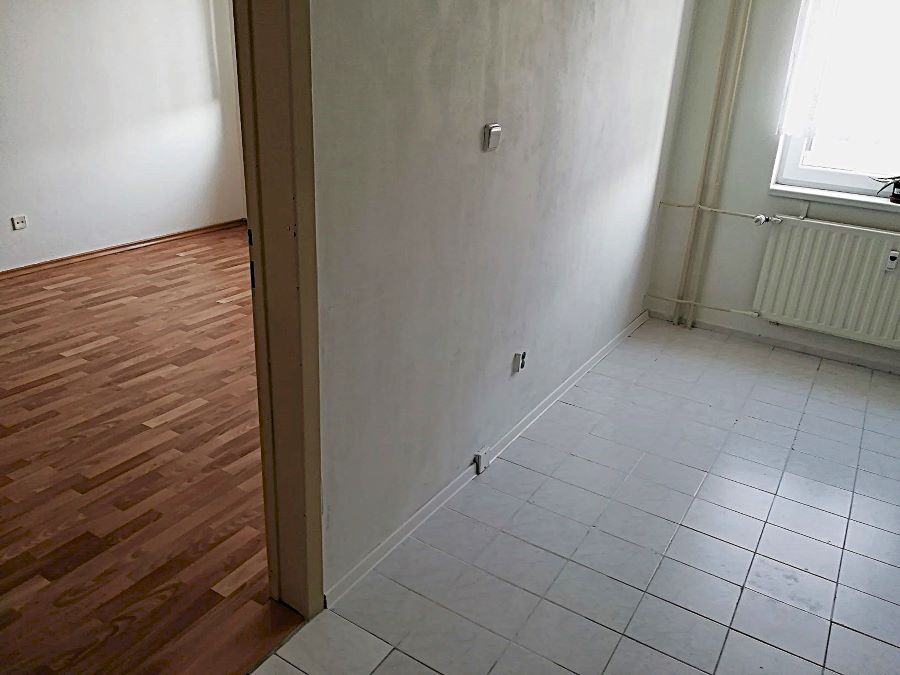 Byt je po rekonstrukci o dispozici 1+1 v panelovém domě na sídlišti Máj poblíž kina Cinestar. K dispozici kuchyňská linka s el. sporákem. Vedle kuchyně neprůchozí pokoj. Ve vyzděné koupelně vana, přípojka na pračku, toaleta součástí koupelny. K bytu náleží sklep, který je k dispozici.
