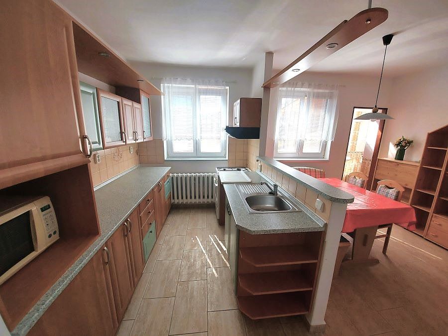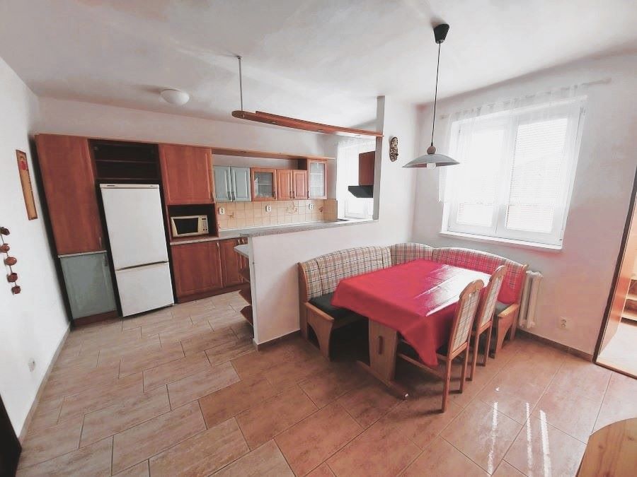 V bytě k dispozici kuchyně s jídelnou a neprůchozí zařízený pokoj pro celkem 2-4 osoby na byt.