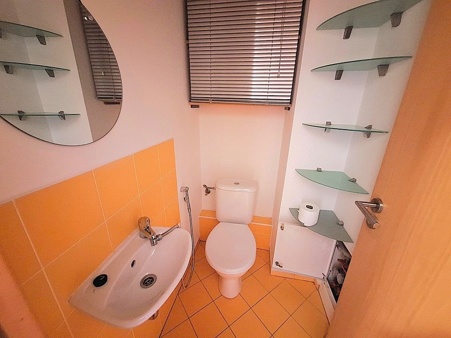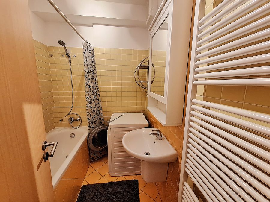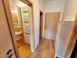 K dispozici kuchyně spojená s obývacím pokojem s přímým vstupem na balkon. Kuchyně je vybavená spotřebiči, jídelním stolem a židlemi. V obývací části sedací souprava, stůl s křeslem a konfereční stolek. V ložnici, která je neprůchozí, je dvoupostel a šatní skříň. V koupelně vana, umyvadlo, zrcadlo, pračka a koupelnový nábytek. Toaleta je samostatná mimo koupelnu. Byt je ve 3.NP (2. obytném patře) bytového domu. Parkovací stání u domu. Byt je kompletně zařízený moderním a praktickým nábytkem.