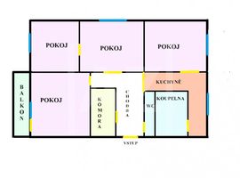 Každý pokoj v bytě má svůj vlastní vchod a jsou neprůchozí! Pokoje jsou vybaveny válendami, psacími stoly s křesly, skříněmi a lampičkami. K dispozici ještě další 4. průchozí pokoj, který slouží jako společná místnost - obývák. Tento pokoj je možné obsadit i dalším studentem.