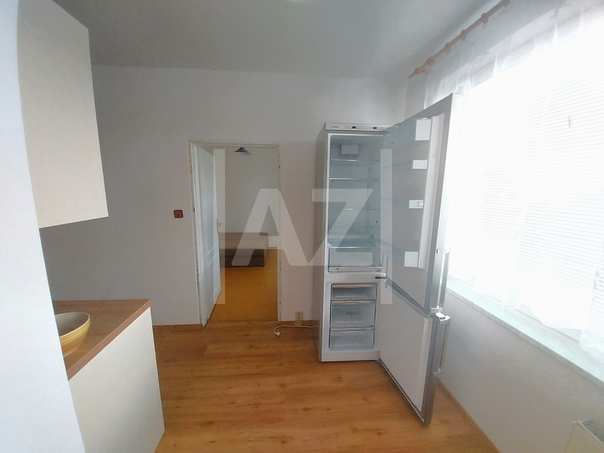 K dispozici kuchyňská linka s kombinovaným sporákem, lednička s mrazákem, mikrovlnná trouba, pračka, myčka, stůl se židlemi. V koupelně vana. Toaleta samostatná mimo koupelnu. V obývacím pokoji původní obývací stěna, jídelní stůl se židlemi.